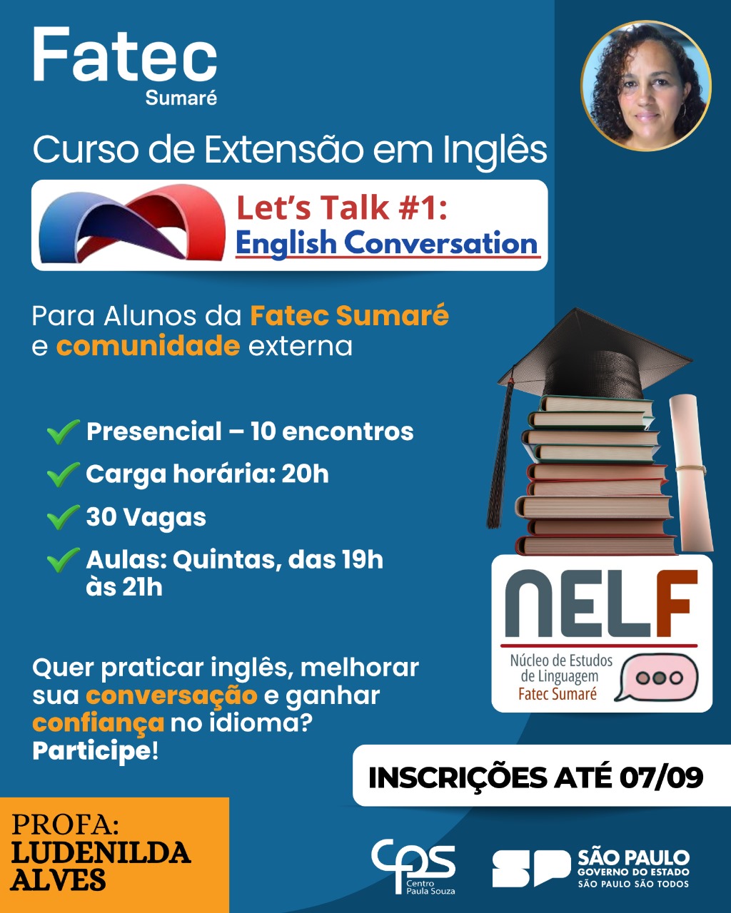 A Fatec Sumaré, por meio do NELF (Núcleo de Estudos de Linguagem), abre inscrições para o curso Let’s Talk #1: English Conversation. 🗓 De 11/09 a 13/11 – sempre às quintas-feiras⏰ Das 19h às 21h📍 […]