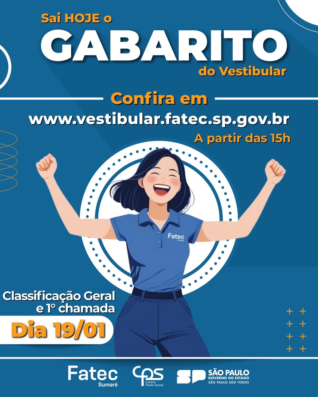 A classificação geral e a 1ª chamada serão divulgadas no dia 19/01 às 15h, no mesmo site.