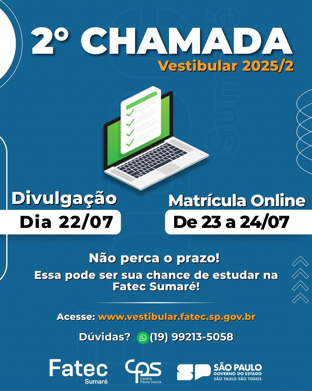 A 2ª chamada do Vestibular 2025/2 da Fatec já foi divulgada!