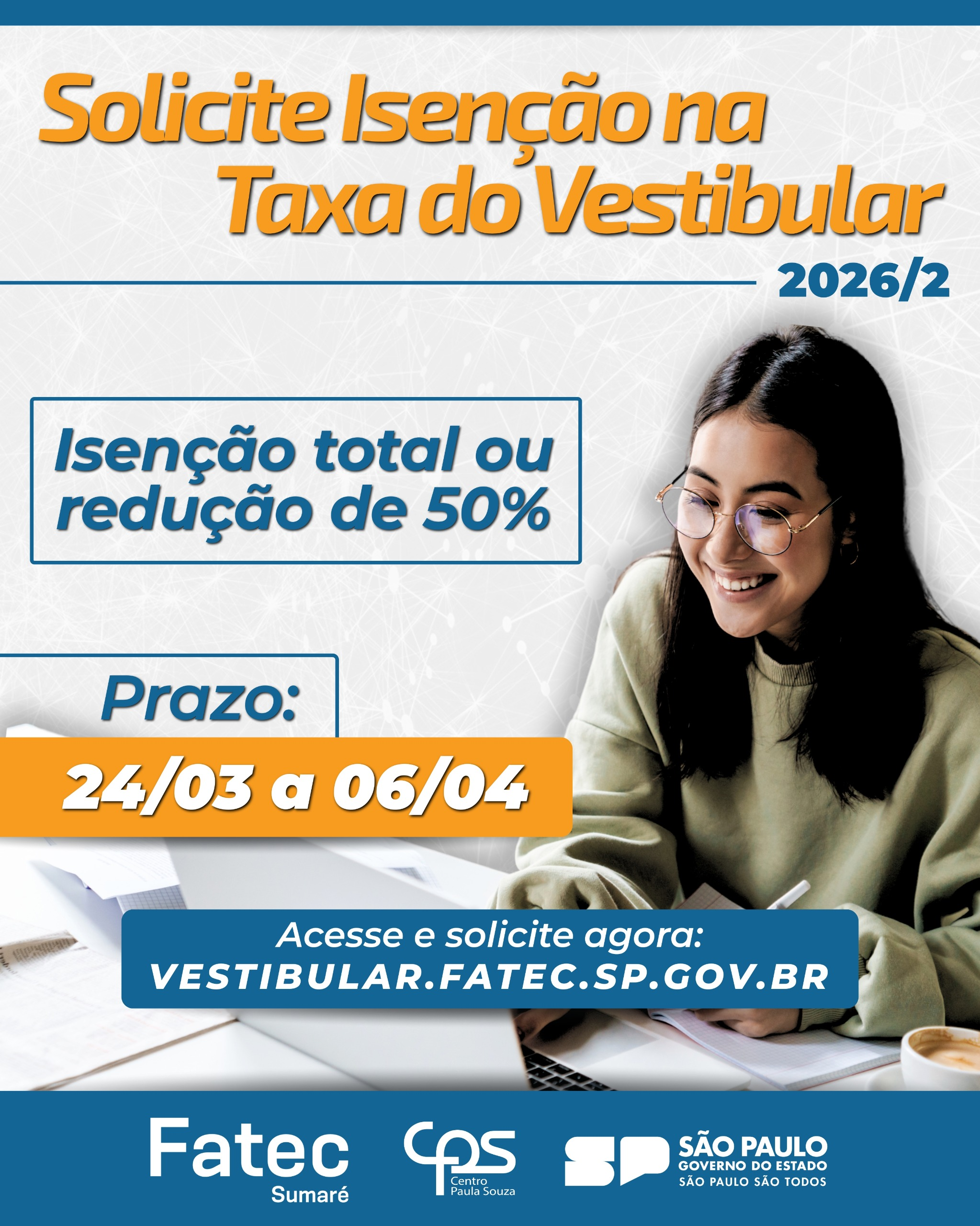 🔗 Solicite pelo site: www.vestibular.fatec.sp.gov.br