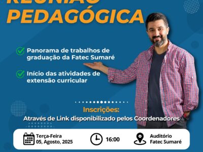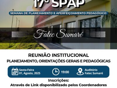 Vem aí a 17ª SPAP da Fatec Sumaré! No dia 01 de agosto, nossos docentes estarão reunidos para um momento de planejamento e aperfeiçoamento pedagógico, abordando temas como atividades práticas e uso de laboratórios. As […]