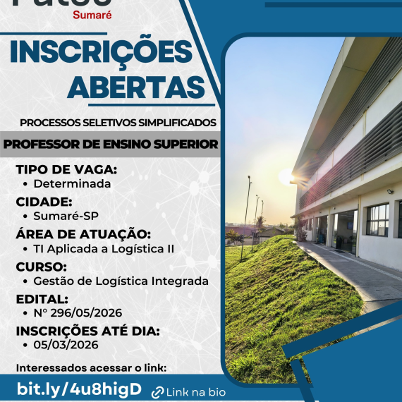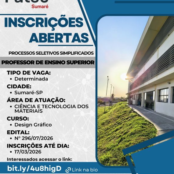 As inscrições para o Vestibular da Fatec Sumaré – 2º semestre de 2025 estão abertas até 06/06!