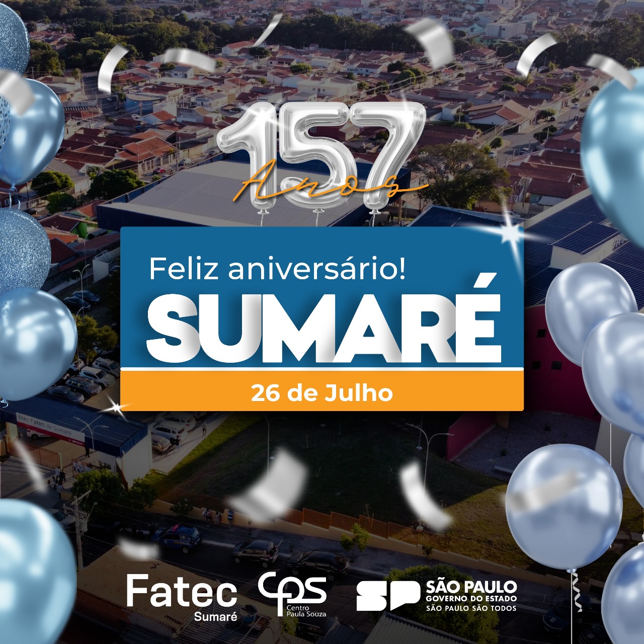 Neste 26 de julho, Sumaré completa 157 anos de história e desenvolvimento. A Fatec Sumaré tem orgulho de crescer junto com a cidade, formando talentos e fortalecendo os laços com a comunidade para um futuro melhor.